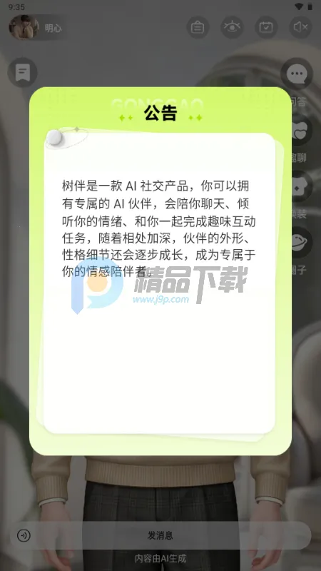 2、在精品网下载后,登录软件,选择性别、角色服装及昵称,即可进行AI聊天与对话。