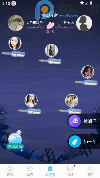 1. 匿名交友:通过扔捞漂流瓶与陌生人匿名互动,分享心情烦恼或交友邀请。