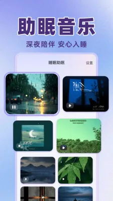 2、助眠音乐超棒,精选的大自然白噪音和轻柔钢琴曲,能让人快速安心入睡。
