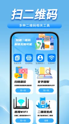 1. 双向二维码工具:既能秒扫各类二维码条形码,也能一键生成文本、网址、联系人、WiFi专属二维码分享信息,无需手动输入,扫一下就能快速传递。