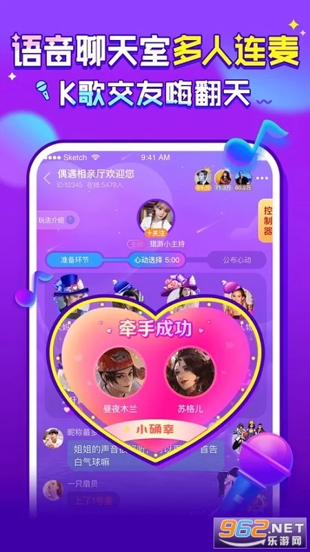 2、玩法丰富多样,能语音连麦K歌交友、约玩游戏、畅聊话题,乐趣无穷。