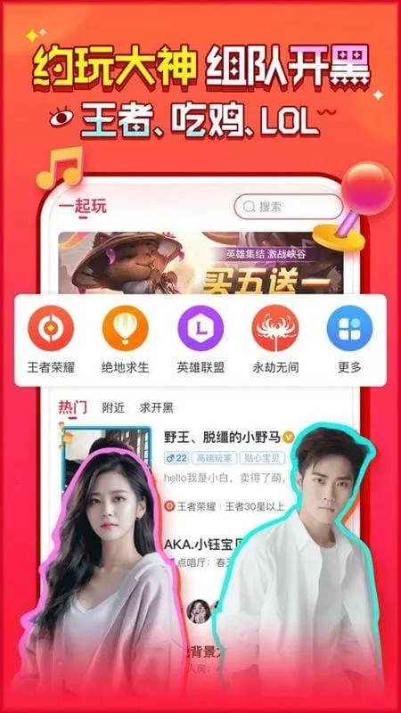 1、语音连麦:超过1000万年轻人汇聚在猎游,一起在聊天室语音连麦K歌交友,还能约玩王者吃鸡开黑上分。