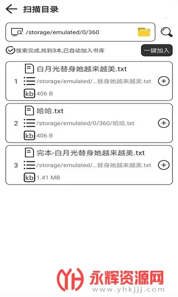 1、支持设备文件扫描并自动加入书库,将指定文件生成一本书,还能在线查看扫描文件目录,方便个性化阅读。