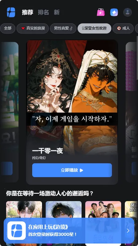Frontia是沉浸式互动叙事创意平台,打破图文局限,有海量素材塑造鲜活世界观。玩家能定制专属剧情,还可创作。支持多种登录方式,实名便捷。每日有福利,上线享免费权益与活动,满足追剧或创作需求,带来丰富体验。