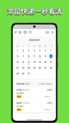 3. 取件日历可视化日历视图,直观展示每日快递状态、已签收待签收,轻松追溯取件记录,防止遗漏。