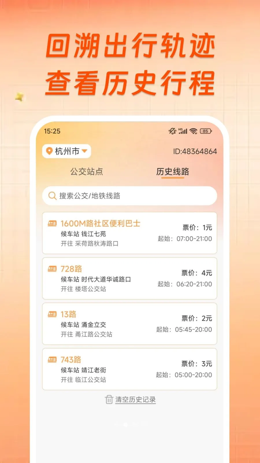 2. 应用内整合多条实用公交线路资源,查询记录自动保存。