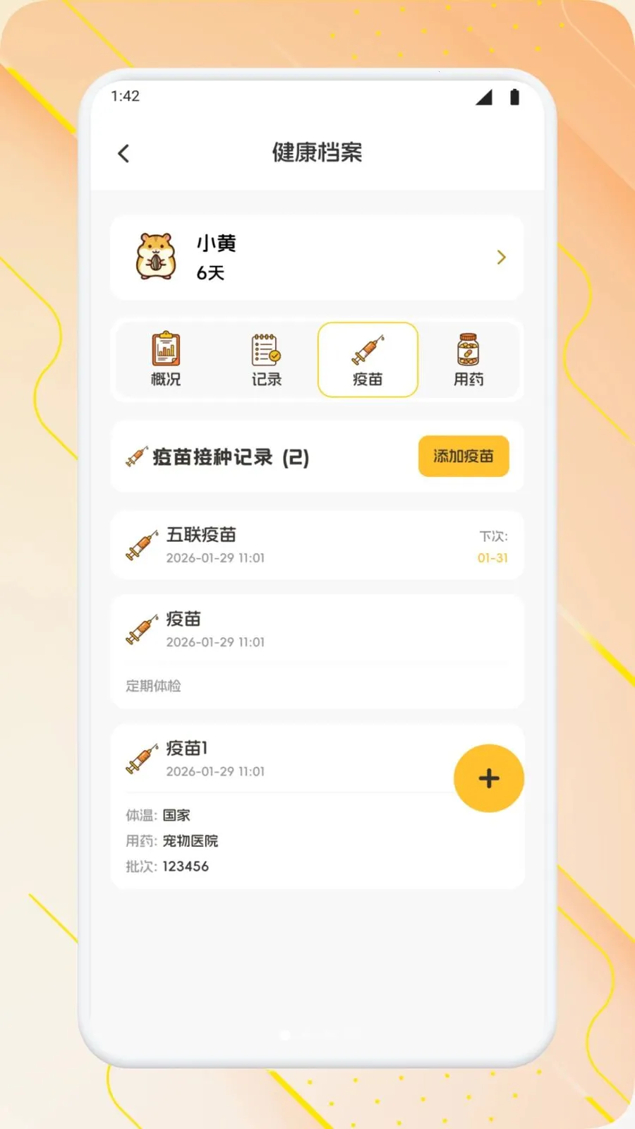 2、详细记录喂食量、疫苗接种、用药情况、运动时长等关键信息,智能提醒护理节点。