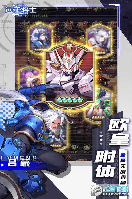 远征将士2026最新版本是一款机甲风三国背景的放置卡牌回合制手游。融合幻想与历史,有炫丽战斗画面、丰富剧情角色。玩家能招募武将美人,通过策略搭配阵容,体验独特三国冒险对战,还有离线挂机等轻松玩法。