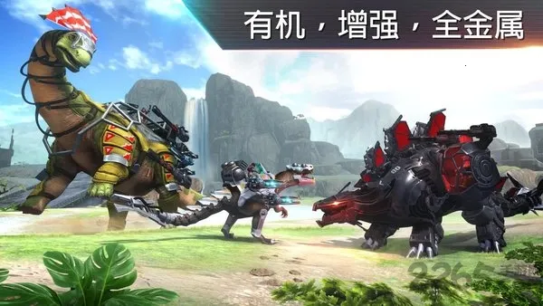 4、设有陆空双重战场,有能飞行的恐龙角色,玩家可自由选择作战领域,武器库种类繁多,可为恐龙配备各种武器。