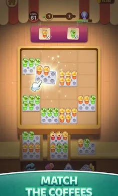 1、玩家需将咖啡包拖放到棋盘上,把相似的咖啡包组合成六包,完成订单获取积分并释放棋盘空间。