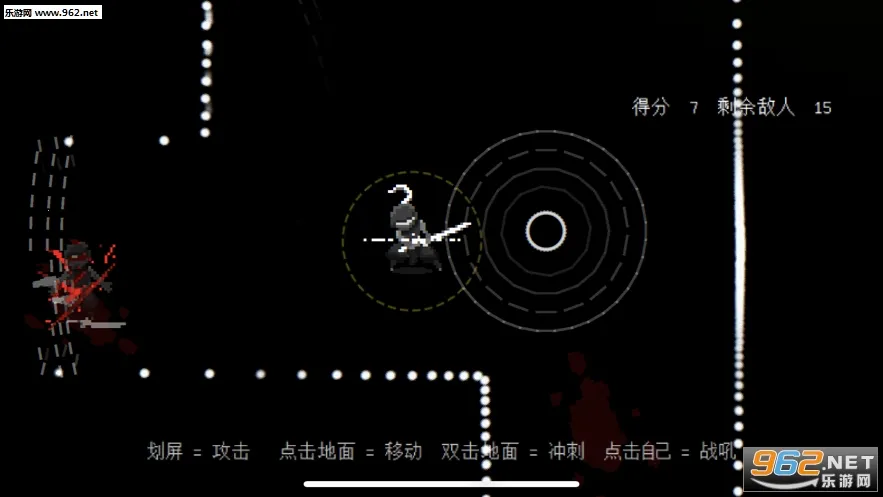 1、操作失明剑术大师,在纯黑白视觉世界冒险,凭听觉与视觉判断敌人方位,挥剑突破包围。