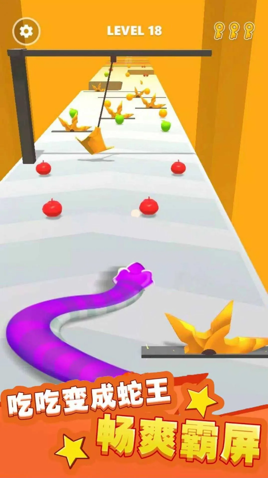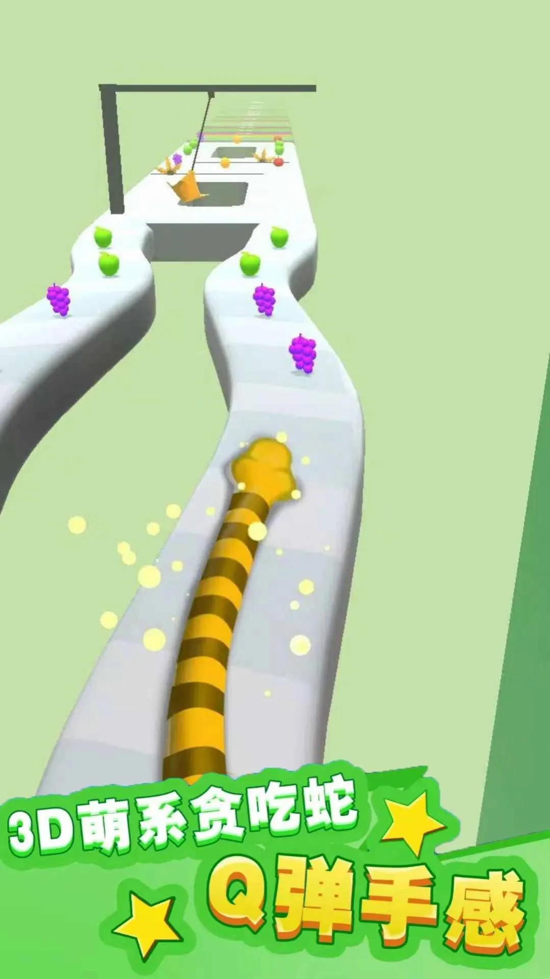 1、带领小蛇穿越奇幻场景,躲避障碍物收集金币。
