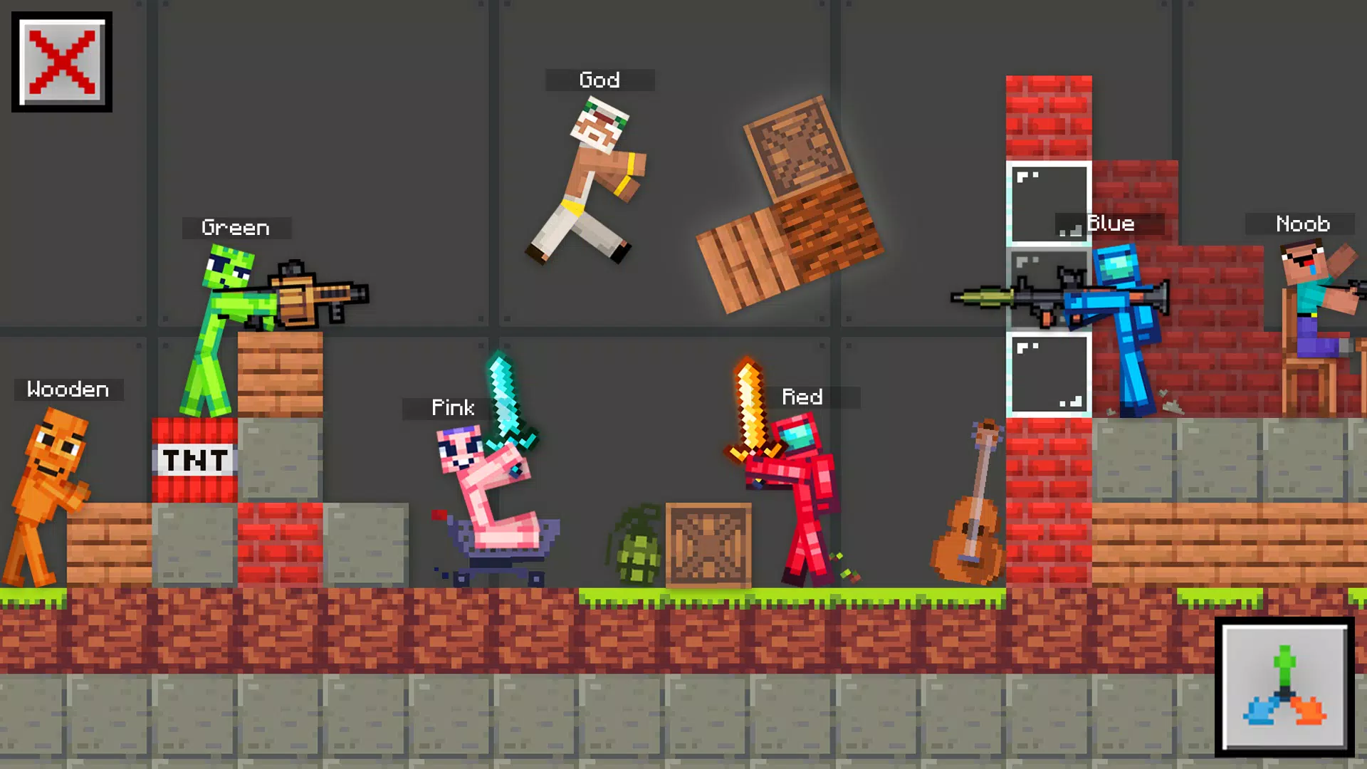 1、玩家能在完全互动的沙盒里自由与角色、武器、方块和建筑互动,互动由像素级物理引擎驱动,动作流畅连贯。