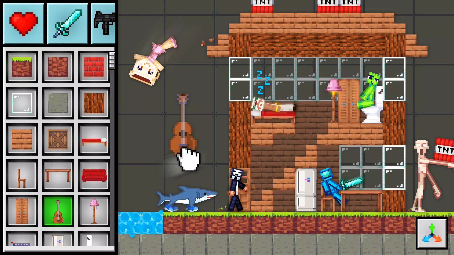 4、建造系统独特,方块放置忽略重力,被摧毁物体有实体碎片