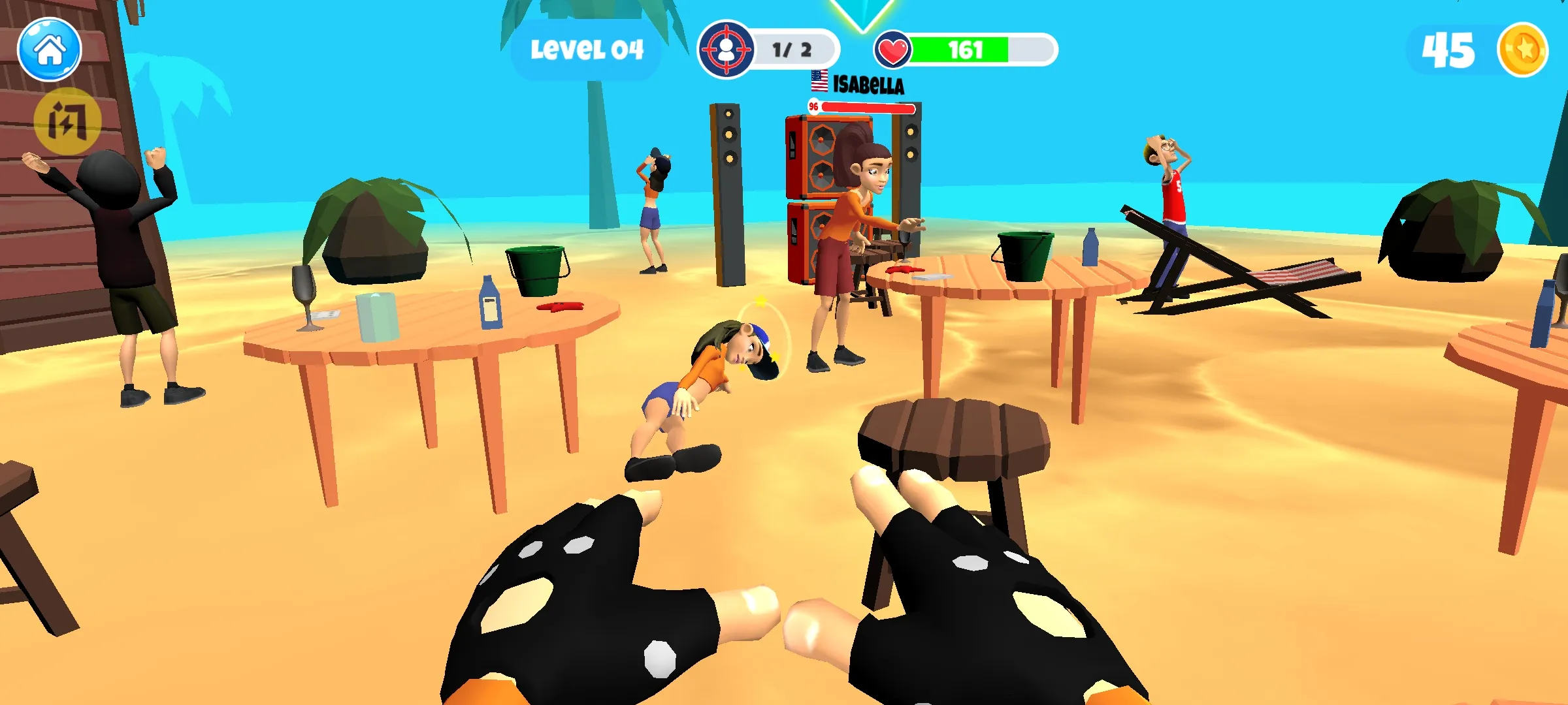 2、精准瞄准,投掷物品,砸烂周围一切来击败对手,制造混乱。