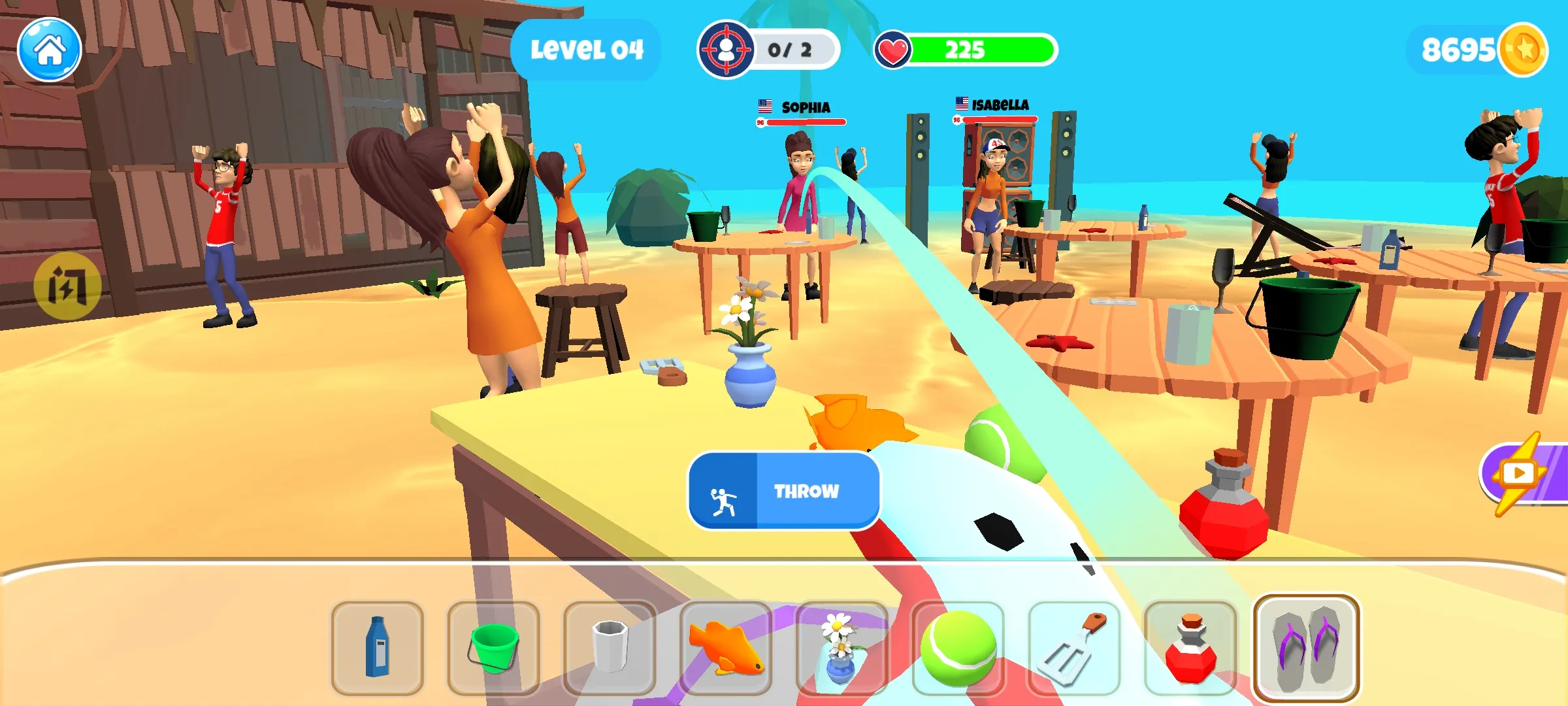 2. 可精准瞄准投掷物品砸烂周围