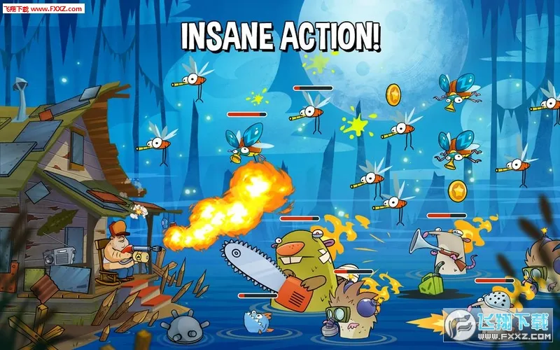 沼泽派对是一款卡通风格的塔防射击游戏。玩家扮演小木屋守护者,抵御动物袭击。游戏采用美式幽默画风,有多种角色、武器,还有丰富道具。操作简单,触屏点击射击,关卡多样,能体验射击与跑酷结合的乐趣,快来保卫家园!