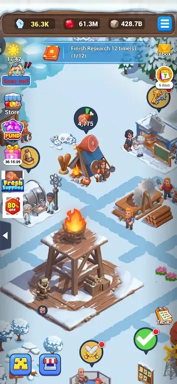 4、探索广袤地图,开拓冰原边境,扩建领地,发展冰雪城堡。