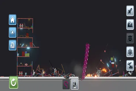 3、多样道具使用:点击场景中的道具如核弹、导弹、黑洞等可触发破坏效果,利用道具冷却时间规划使用,帮助通关。