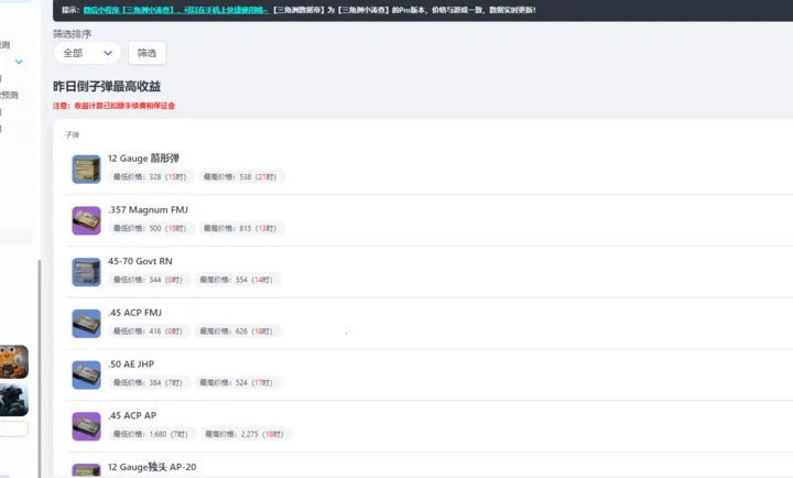 3. 实时战备交易行数据源自真实游戏内交易行,与游戏一致