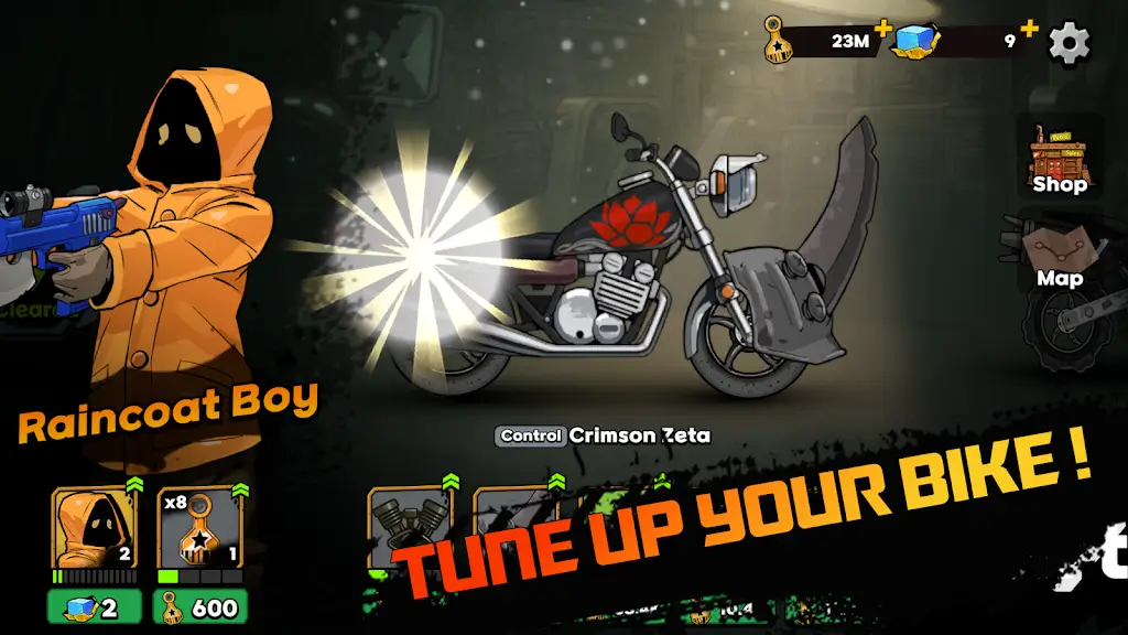 3、完成各种惊险任务,解锁新区域,提升角色能力和摩托配置,多样化角色与独特装备等你体验。