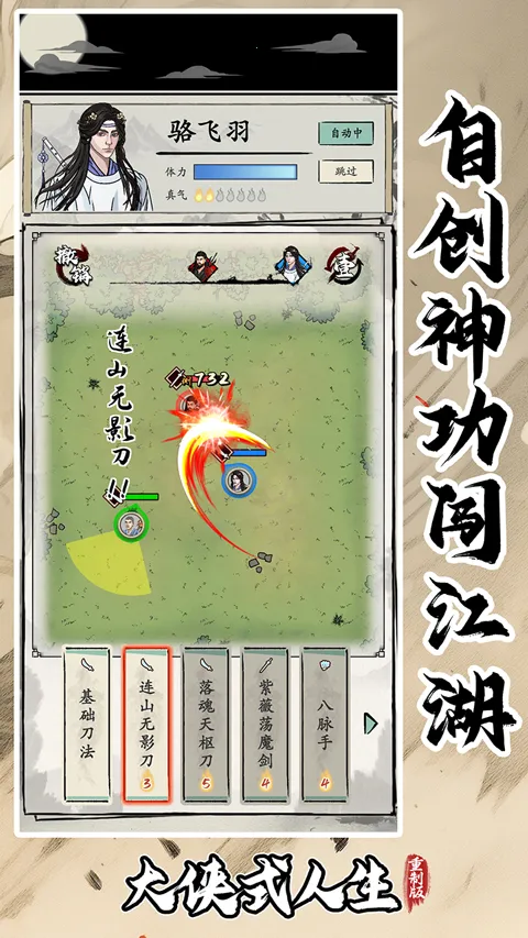 3、自创绝世武功,成为掌门后创造专属绝学并自定义名字,再次响彻江湖。