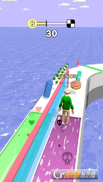 1.玩家控制角色走在人生道路上,通过左右滑动选择前进方向和拾取道具,目标是越走越年轻抵达终点。