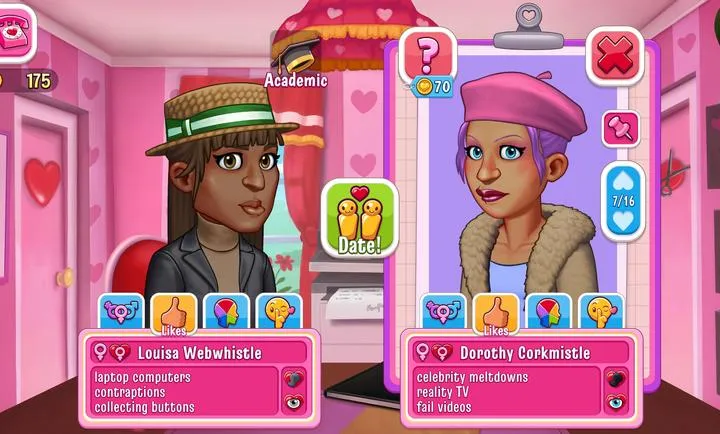 3、全新游戏元素带来全新体验,约会难题、改进机制与优化操作,助玩家轻松打造完美匹配,尽显媒人才能。