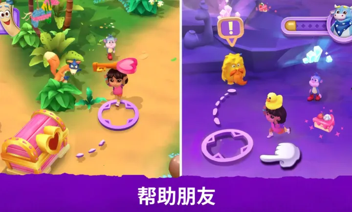 1、探索与发现:在色彩缤纷的经典场景中冒险,从朵拉的小屋到高山峰,培养好奇心与问题解决能力。