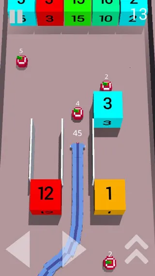 1. 数字方块机制:画面中分布着带有数字的方块,贪吃蛇触碰时,会以等量自身长度消耗为代价撞击破除方块,需权衡是否消耗长度清除方块。