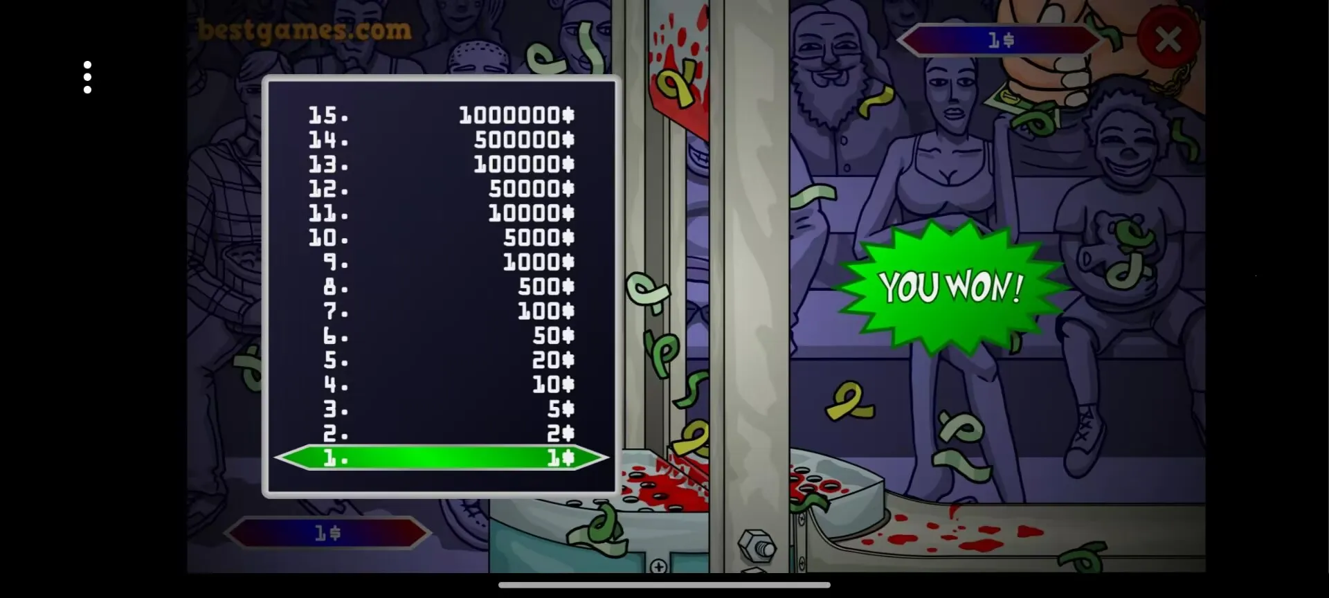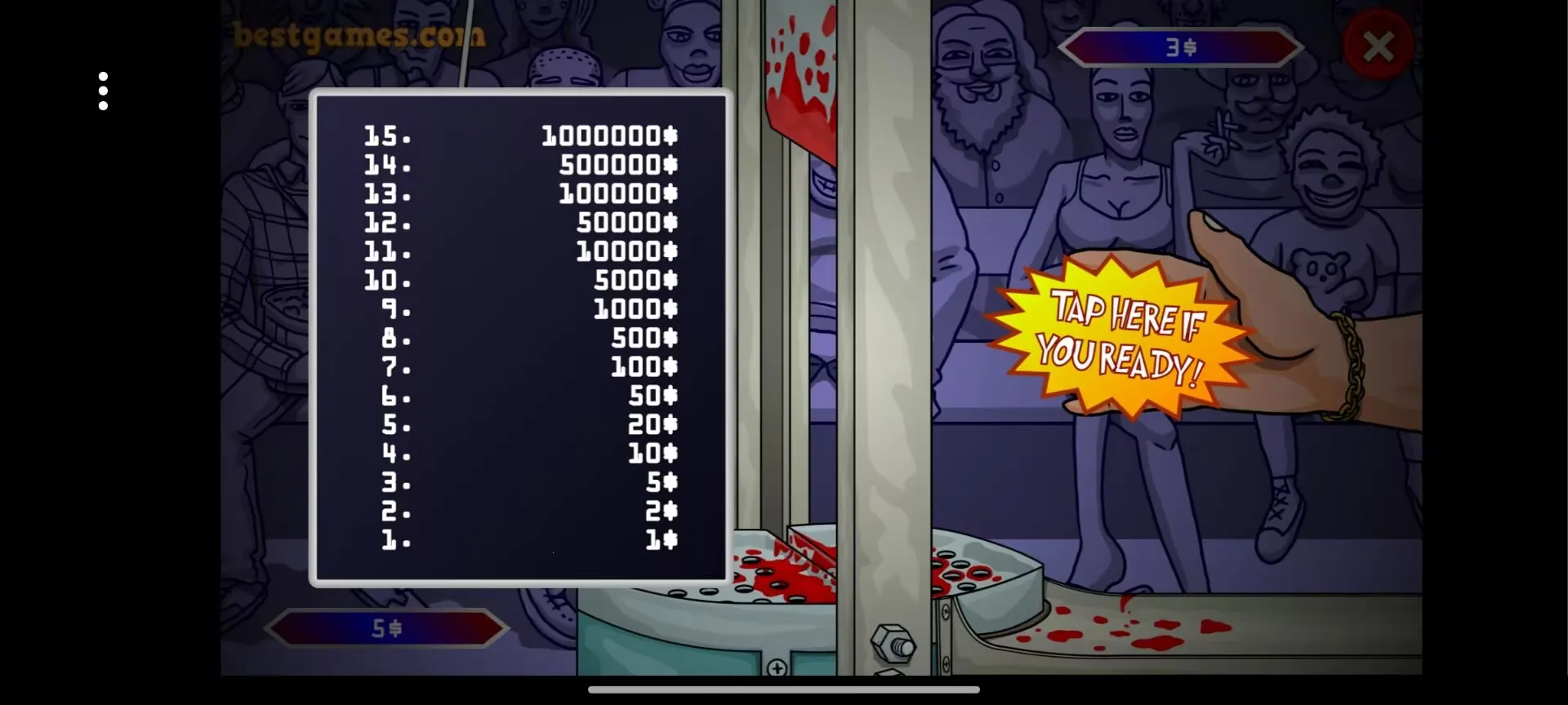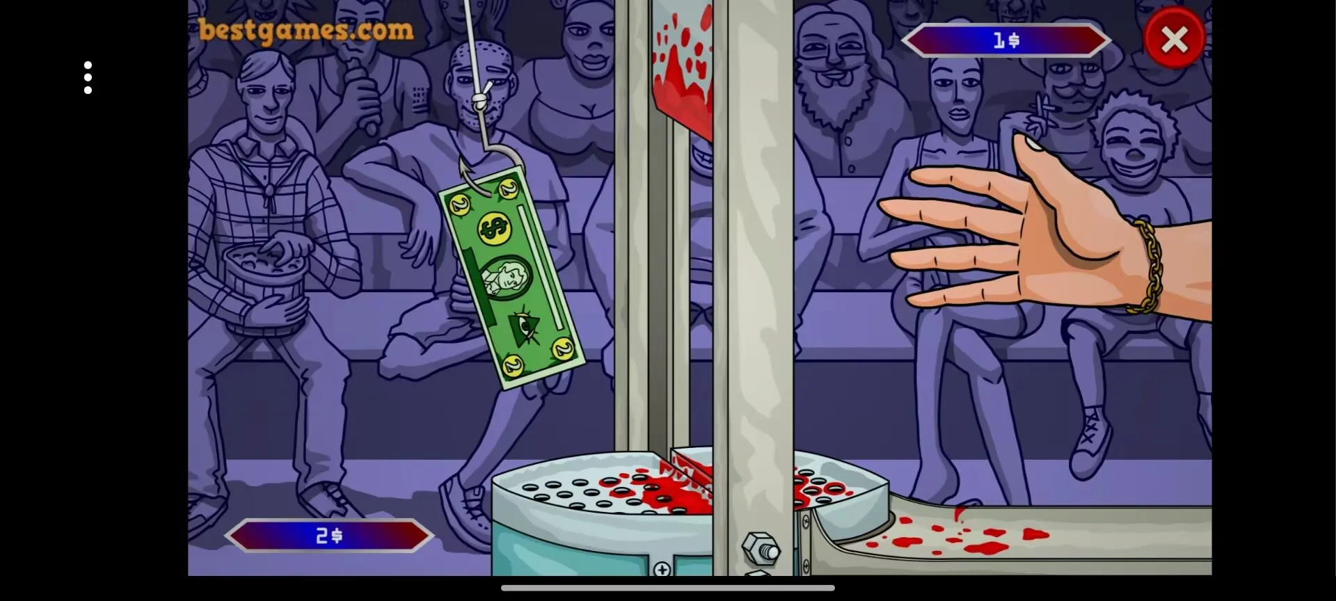 拿钱剁手2026是一款休闲游戏,文件仅2450KB。玩法源自百万富翁,融入恶搞惊悚元素。玩家操控虚拟手穿机关收集美钞,靠鼠标左键操作,有14个难度递增关卡,还有多样道具,界面简洁,考验反应与决策能力。