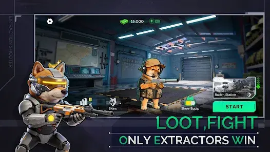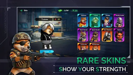 3、扮演狗狗战士,体验快节奏射击游戏,探索战场,拾取稀有武器等。
