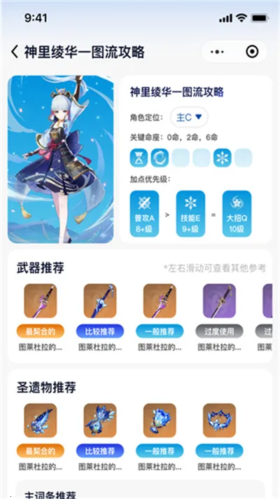 4、专为原神玩家打造,能帮助玩家深入了解游戏,提供全面的装备和圣遗物推荐,让游戏之旅更加顺畅愉快。