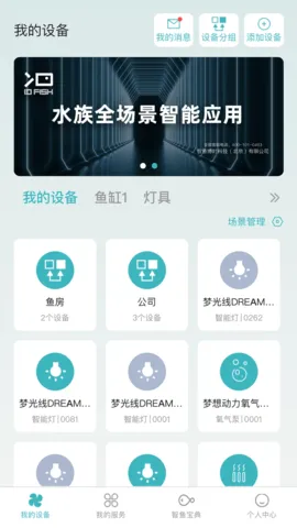 智鱼云是由智鱼博时科技北京有限公司研发的水族设备管理软件。可通过手机远程操控水族箱设备,实时监测生态状态,具备断电断网报警等功能。支持扫码获保修卡,能一键添加管理设备,分组操控,方便用户管理水族设备。