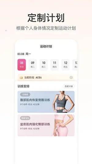 2、训练计划能智能个性化定制,依据用户健康数据生成推荐,科学合理。