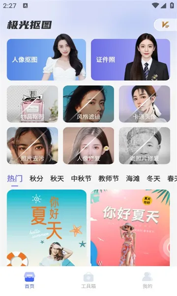 1. 核心入口清晰:首页上方功能区的人像抠图按钮,是快速抠取人物主体的核心入口。