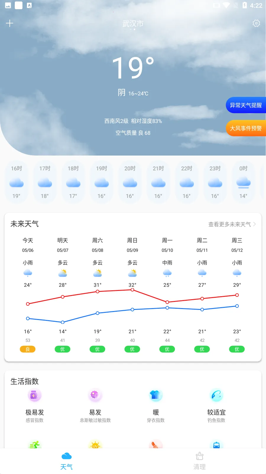 3. 功能丰富:提供24小时实时更新和未来15天的天气预报,还有空气质量指数等,且有天气分享和卡片管理等功能。