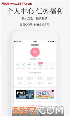 3、连续签到奖励超丰厚,坚持就能免费看书,畅读各类完结小说,如仙侠、玄幻、总裁等。
