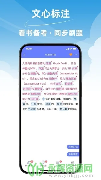 2、软件拥有书摘、标注、闪记、背题、刷题等丰富功能,助力学习备考。
