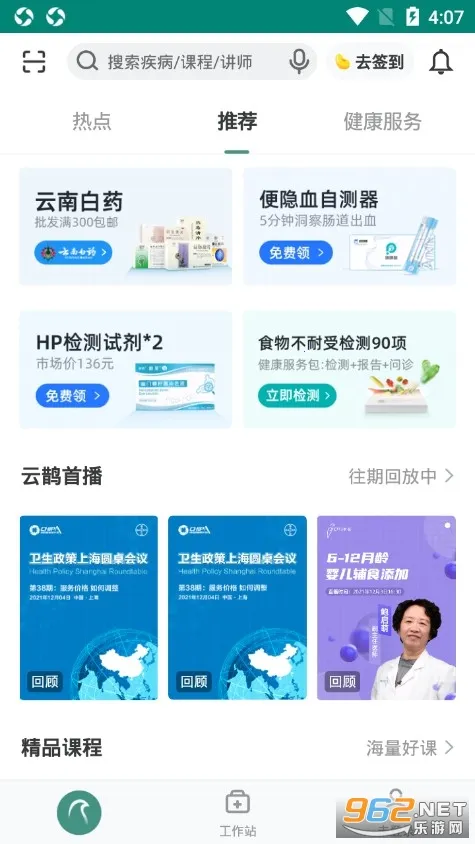 2. **功能全面**:软件功能涵盖入门到高级的微专业课程,联合国家心血管病中心开发高血压糖尿病等慢病管理课程五分钟医学院以音频图文形式解析常见病,利用碎片时间强化知识点云鹊首播每周邀请三甲医院专家直播答疑,支持会议转播与多方视频互动通过健康漫画随访通知等内容触达居民,附带答题功能验证教育效果。