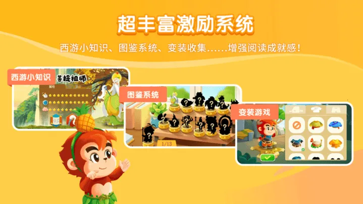 3. 具有多种激励系统,如人物图鉴、角色套装等奖励,鼓励孩子坚持阅读。