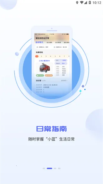 智慧小蓝消防是一款超棒的消防站管理软件。它功能强大,能管人、抓事、定物、谋战。有智能工作模式,消防员可在线上班巡更,支持视频智能互动。全面覆盖消防训练场,让工作更规范精细,提升效率。还具备多种管理功能,像车辆管理、视频监控、考勤管理等。特色方面,有每日指南,即时通讯消息智能分类,沟通高效,智能工作台让重要事项一目了然。能远端收集管理数据,通过烟雾、温度传感器24小时全方位监控终端隐患,实现隐患数据化,自动报警控制火情。优势明显,功能全,能轻松享受智能化生活,可添加多种设备,一个APP操作所有智能设备,提前设任务还能按时执行。有需要的消防站相关人员快来下载使用吧,它能极大方便消防工作。