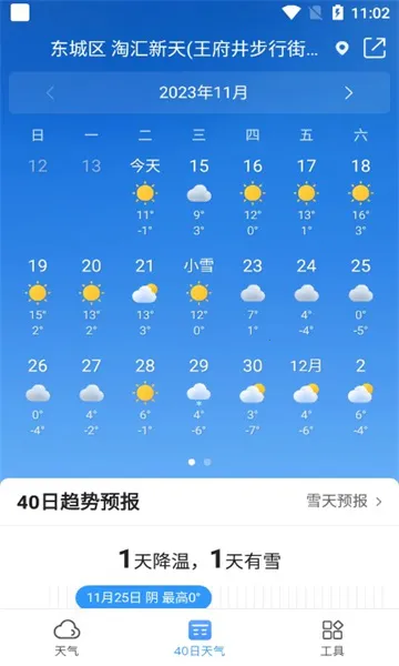 15日天气预报APP可精准查询全国及全球众多城市天气,提供未来40日预报、未来96小时逐小时变化等。有分钟级雨雪提示、空气质量监测等功能,界面简约,更新及时,还能一键分享,为生活出行提供便利。