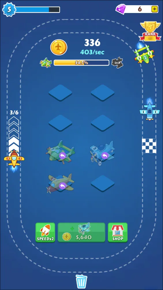 4. 游戏终极目标是扩建所有飞机航线,每个航线上都是完美合体飞机。