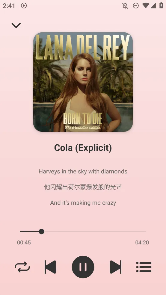 4、智能便捷:基于听歌习惯精准推送歌曲,提供个性化推荐;滑动切歌交互流畅,操作简单,还支持歌词同步显示等。