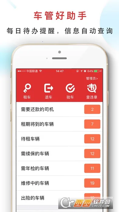 1、多角色工作站,可轻松管理车辆、客户、财务、销售等所有信息记录,还有日常待办事项、违规批量检查、租金自动提醒、续费年检自动提醒、证件自动识别、信用审核等数十项绩效提升工具。