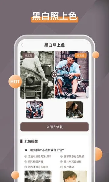 1、这款软件能给老照片上色,让人物更加生动鲜活。