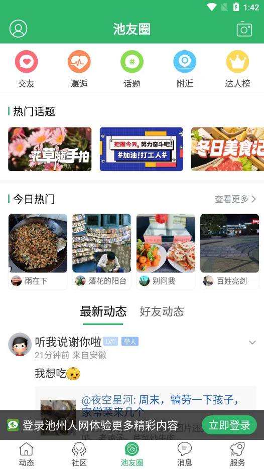 池州人网是依托成立15年的池州人网建立的本地化社交应用。贴近池州人衣食住行等日常消费领域,提供便捷社交空间与本地生活服务。有新闻资讯、便民服务,支持多方式登录,可自由发布动态、查询商家,草稿箱存灵感。