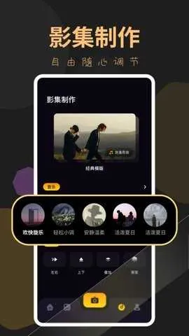 2、分类清楚,找应用不用翻来翻去,打开软件后点击底部中间的创作按钮,选择视频拼接或影集制作进入编辑界面,操作清晰明了。