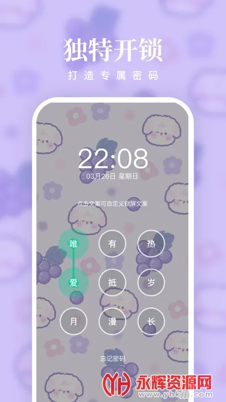 3、个性化创作功能:提供定时自动切换、一键更换锁屏与桌面壁纸等功能,还内置文字贴纸滤镜画笔等编辑功能,支持半透明人像特效等混搭效果,可自由创作个性化壁纸。